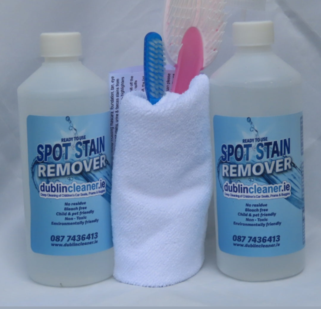 XL Bundle - 2 x 500ml bottle of Dublin Cleaner Spot Stain Remover, 1 x nozzles, 1 x white microfibre washable cloth , 1 x agigation brush, 1 x cleaning toothbrush